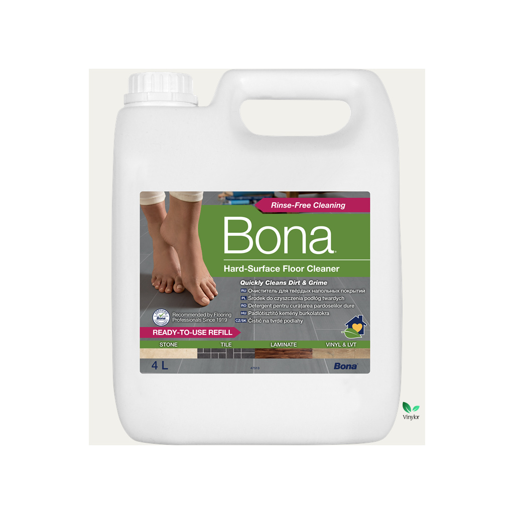 Bona Čistič na tvrdé podlahy je snadný a rychlý čisticí prostředek pro bezpečné a efektivní čištění tvrdých podlah. Je připraven pro okamžité použití, nezanechává šmouhy, účinně odstraňuje prach, nečistoty a špínu a zanechává podlahy čisté a krásné. Je speciálně vyvinut pro luxusní vinyl, LVT, LVP, linoleum, kámen, terrazzo, vinyl, uzavřený porézní mramor, laminátové podlahy a dlaždice bez vosku (keramika, mexické saltillo). Čisticí prostředek na vodní bázi. Certifikován GREENGUARD GOLD, jako bezpečný produkt pro vaši rodinu, vaše domácí mazlíčky a naši planetu.