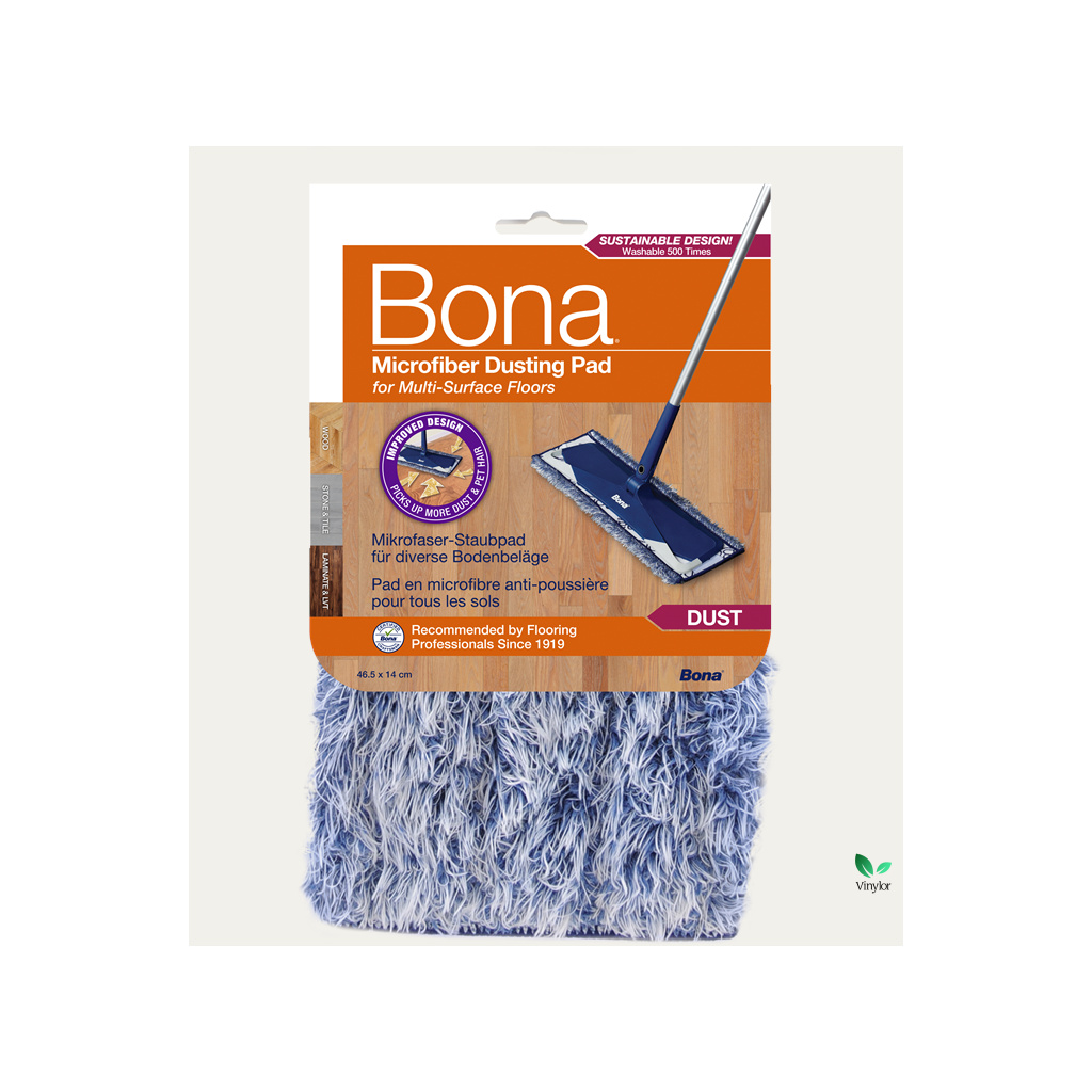 Bona Dusting Pad prachová modro-bílá utěrka elektrostatická, přitahuje a zachycuje prach, nečistoty, alergeny a chlupy od domácích mazlíčků. Používejte ji pro denní úklid suchou metodou, abyste snížili riziko možného poškrábání povrchu podlahy.