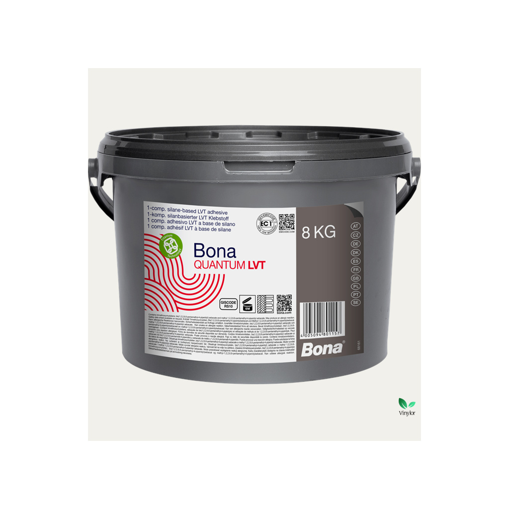 Bona Quantum LVT je silanové lepidlo určené pro lepení LVT podlah. Jedná se o lepidlo nejnovější generace na bázi silanu s velmi nízkými emisemi pro pokládku široké škály LVT nebo vícevrstvých modulárních podlah podle EN 16511. Lepidlo se liší od běžných lepidel s mokrým ložem ve velmi vysoké počáteční lepivosti. Podlahové krytiny se okamžitě zafixují, ale lze je ještě upravit. Lepidlo není nutné odvětrávat. Bona Quantum LVT lze použít v oblastech se zvýšenou vlhkostí a je dokonce odolné vůči zvýšenému obsahu zbytkové vlhkosti v podkladu.