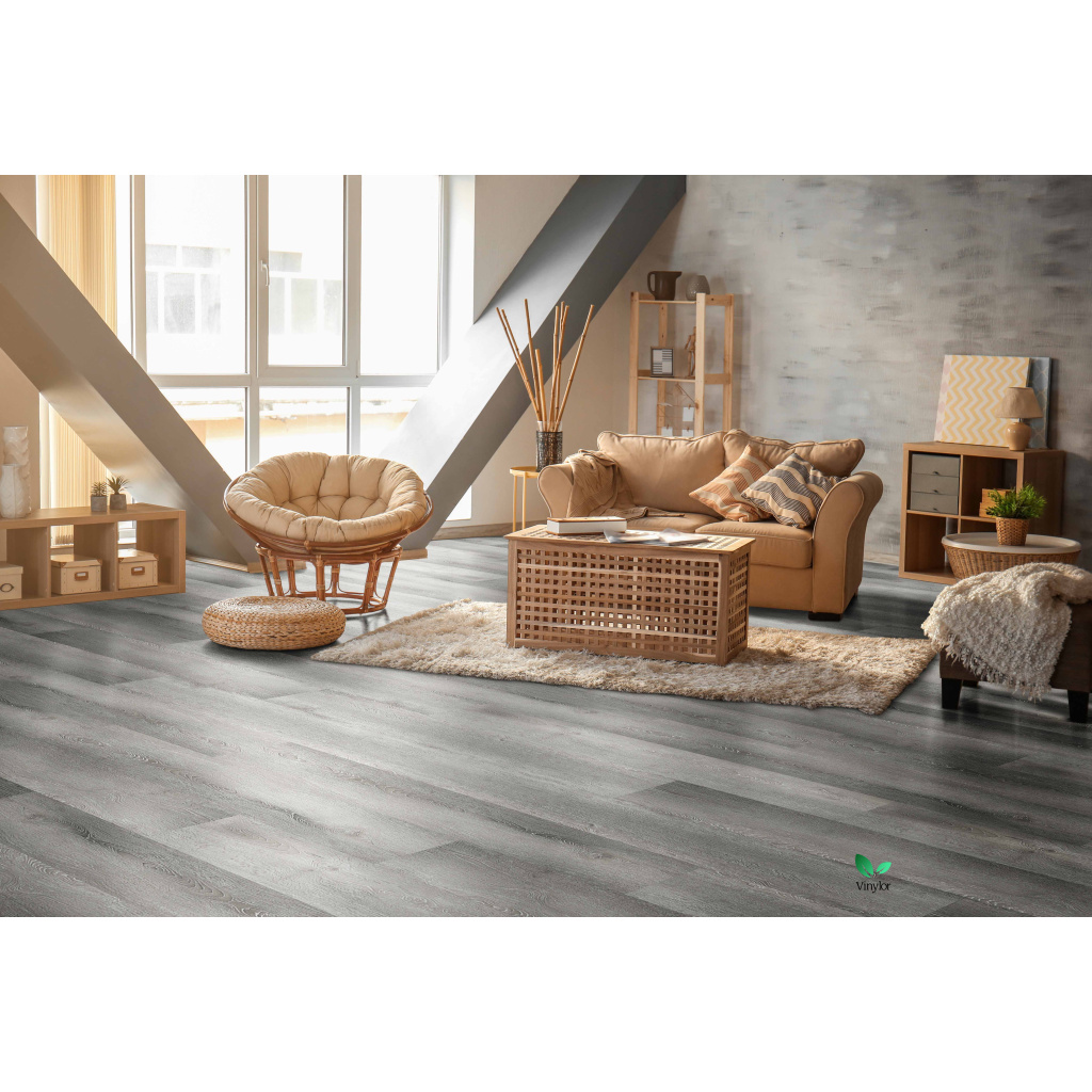 Vinylová Podlaha Rigid SPC Click OAK Arizona - hnědá s integrovanou akustickou podložkou EVA 1mm. Podlaha má na spodní straně integrovanou akustickou podložku o síle 1 mm. Není již nutné dávat dodatečnou podložku. Celková tloušťka vinylového dílce je 5 mm a nášlapná vrtsva má sílu 0,5 mm. Ideální podlaha do bytu pro střední i vyšší zátěž. Vinylové dílce mají délku 123,5 cm a šířku 17,8 cm, zkosené hrany po všech 4 stranách, 3D embosovaný povrch.