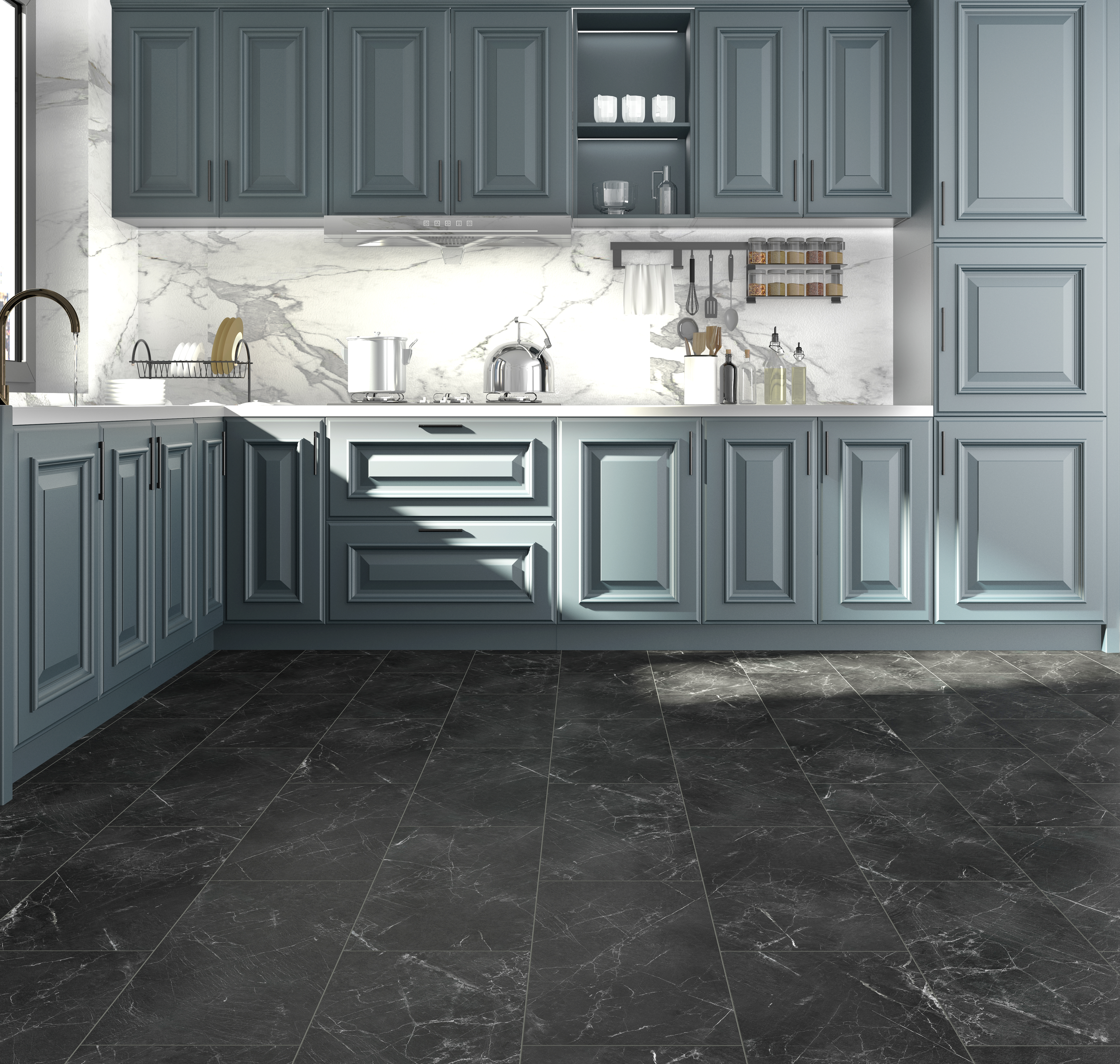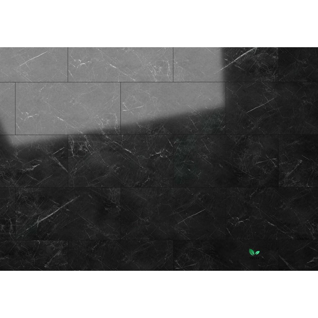 Vinylová Podlaha Rigid SPC Click Highland BLACK CARRARA - s integrovanou akustickou podložkou EVA 1mm. Podlaha má na spodní straně integrovanou akustickou podložku o síle 1 mm. Není již nutné dávat dodatečnou podložku. Celková tloušťka vinylového dílce je 6 mm a nášlapná vrtsva má sílu 0,5 mm. Ideální podlaha do bytu pro střední i vyšší zátěž. Vinylové dílce mají délku 81 cm a šířku 40,5 cm, V-spára, 3D embosovaný povrch který má jedinečně realistické provedení.