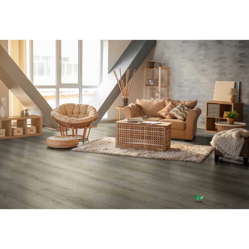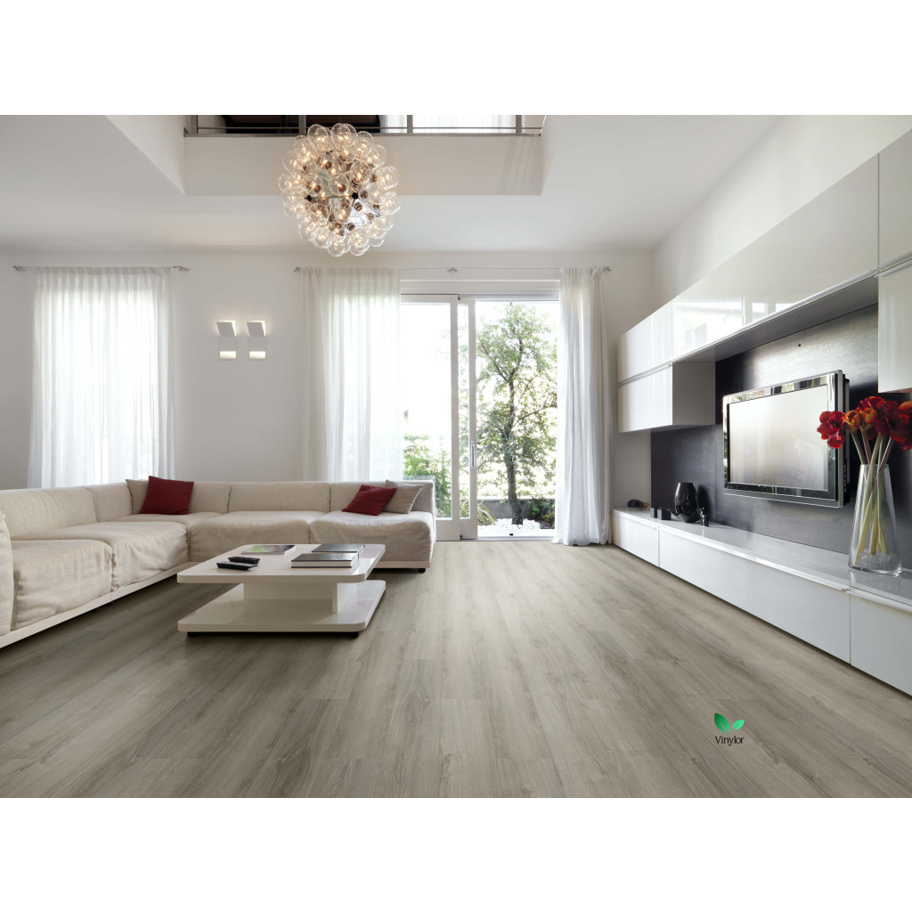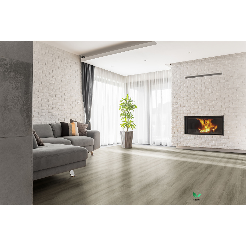 Vinylová Podlaha Rigid SPC Click OAK DESSERT - s integrovanou protihlukovou podložkou EVA 1mm. SPC je zkratka pro Stone Plastic Composite, což znamená že podlahy mají tuhé jádro tvořené ze směsi vápence a stabilizátorů. Jsou velmi odolné, hodí se proto i do komerčních prostor a jsou ideální na podlahové vytápění. Podlaha má na spodní straně integrovanou protihlukovou podložku o síle 1 mm. Není již nutné dávat dodatečnou protihlukovou podložku. Tato podlaha se vyznačuje vyšší odolností vůči poškrábání, a to díky silné nášlapné vrstvě 0,5 mm. Poradí si s kolečkovou židlí či Vašimi domácími mazlíčky. Celková tloušťka vinylového dílce je přitom úctihodných 5 mm a díky technologii SPC je rozměrově stála. Ideální podlaha do bytu pro střední i vyšší zátěž. Tato podlaha vzhledem k velké nášlapné vrstvě 0,5 mm lze použít i do komerčních prostor. Podlaha má vrchní vrsrtvu s přídavkem mikro-keramických částic ,které jsou odolné proti UV záření. Mezi velké přednosti patří silné jádro na bázi vapence s licencovanou technologií GRIDTECH. Podlaha je 100% voděodolná a proto ji lze instalovat i do koupelen. Vinylové dílce mají délku 123,5 cm a šířku 17,8 cm a zkosené hrany po všech 4 stranách. Také se tomuto typu zkosení říká V4 lamela. To znamená že lamela má drobné zkosení po všech čtyřech stranách. Drobné V drážky vytvářejí skutečný dojem dřevěné podlahy a výsledný efekt položené podlahy je skvělý. V4 zkosení mají podlahy ve vyšší cenové relaci. Údržba naší vynilové podlahy je naprosto standartní.
