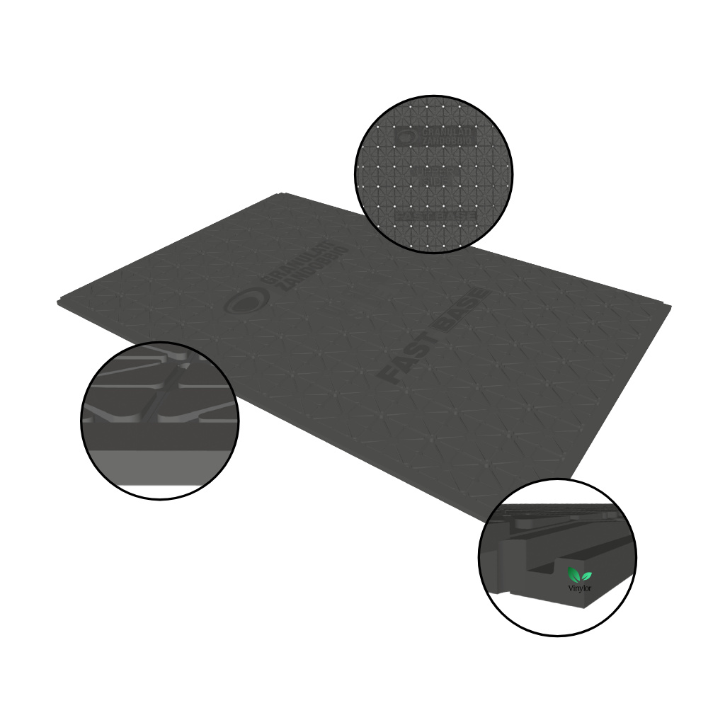 FastBase je nová generace podkladního řešení pro dlažbu, nahrazuje tradiční instalace zhutněného kameniva, poskytuje velkou stabilitu a zároveň snižuje potřebu výkopových prací.