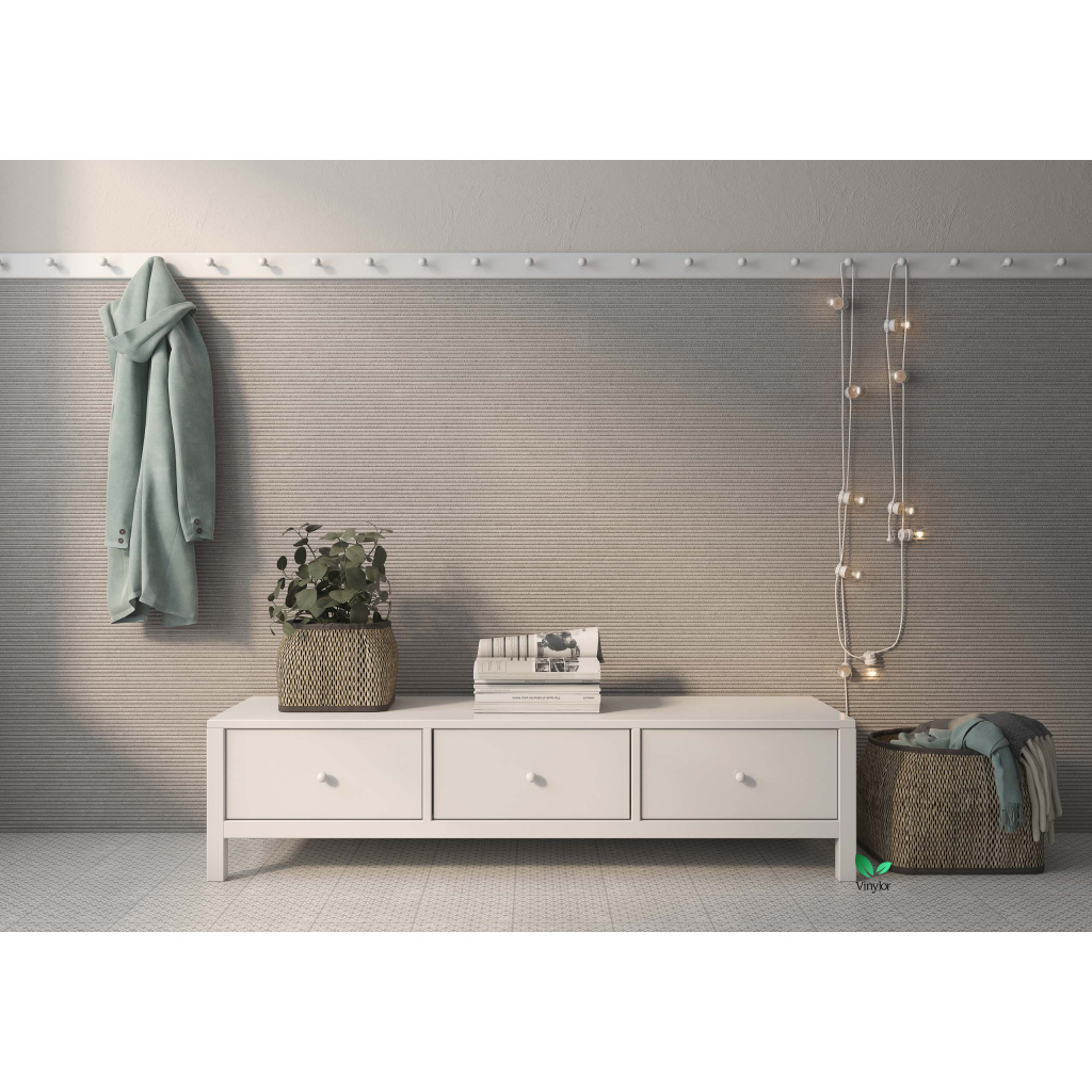 Kámen, který dýchá, dotek a barva se spojují v červnu a přinášejí klid v nejčistší podobě. Jeho kamenný vzhled spojuje pečlivou techniku tisku a reliéfu s neutrálními odstíny šedé nebo grafitové barvy a jemnými záblesky světla podobnými těm, které vytváří slunce v přírodním kameni. Po rozložení si věrně zachovává vzhled vápence, který připomíná bílý a perleťový mořský písek s měkkou, rozmanitou strukturou a bohatými nuancemi. V nástěnném formátu evokuje horizontální rozložení rovnoběžných drážek každého kusu křemeny vytvořené moři a oceány, s jemnou strukturou a jemnými body třpytivého světla, jako by se zrodily z mušlí, křemene nebo vápence.