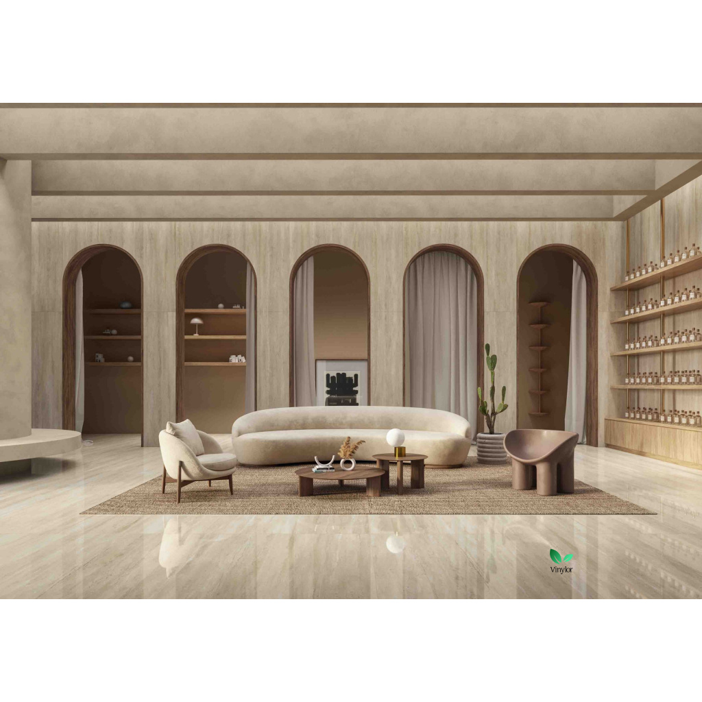 Pečlivě byly vytvořeny různé barevné odstíny, od bílé, krémové a béžové až po tmavší tóny, jako je hnědá, zlatá a okrová. Tyto odstíny dodávají hloubku lineárním žilám, které jsou pro travertin tak typické. Speciální inkousty a inovativní výrobní procesy umožňují věrně napodobit charakteristické dutiny přítomné v přírodním kameni.