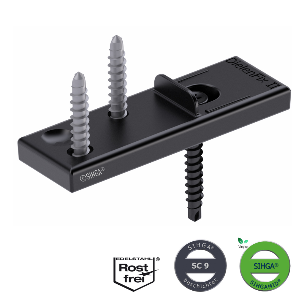 SIHGA® DielenFix® DF je inovativní systém pro skryté uchycení dřevěných terasových prken, vyvinutý a patentovaný v Rakousku. Díky tomuto řešení získáte elegantní vzhled terasy bez viditelných šroubů, což zároveň prodlužuje životnost dřevěné konstrukce.