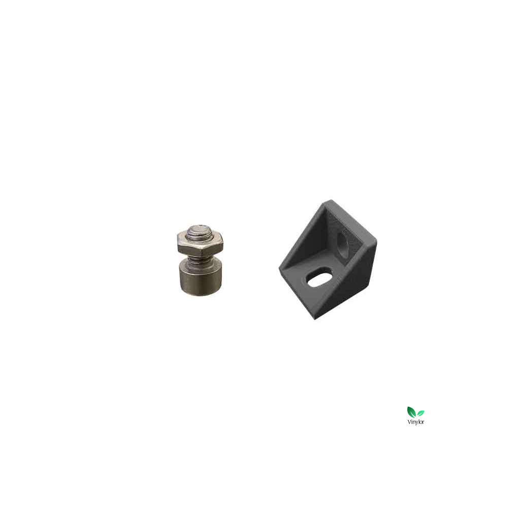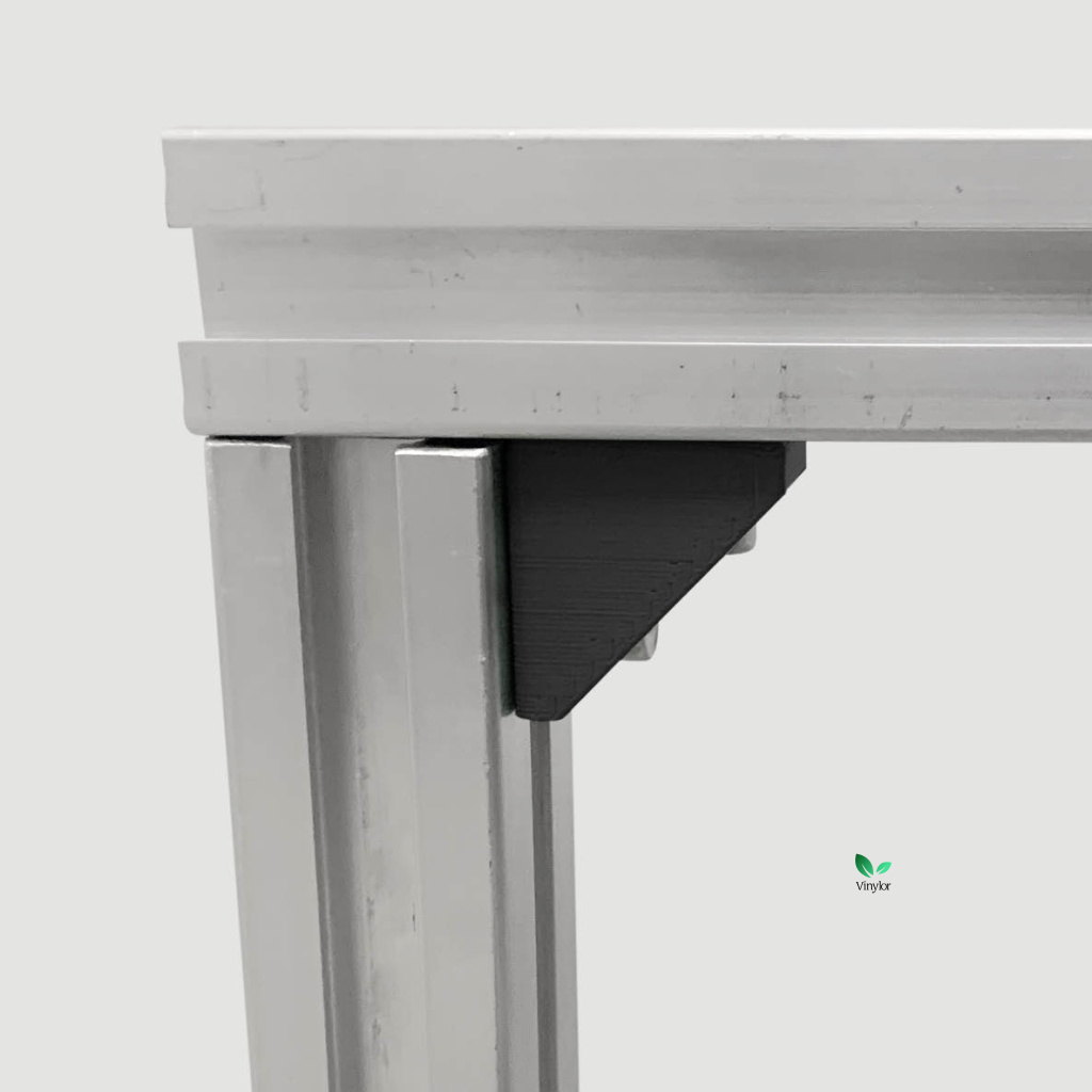 Rohový konektor pro hliníkový profil umožňuje spojení dvou hliníkových profilů v pravém úhlu k vytvoření nosného roštu.