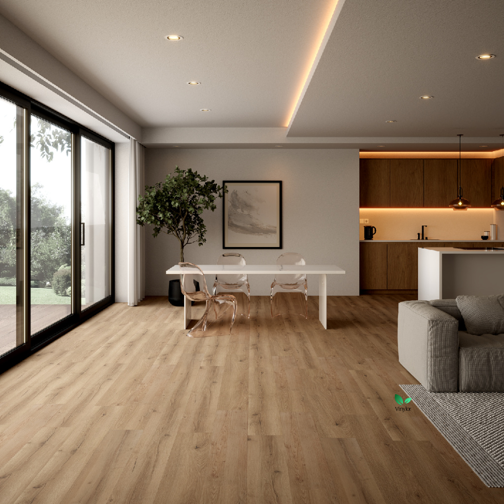 Dekor: Spinell EIR – Tato podlaha přináší přirozený vzhled dubového dřeva s jemným rustikálním nádechem. Teplý světlý odstín se subtílnými suky a jemnými prasklinami dodává podlaze autentickou strukturu a přírodní charakter. Díky synchronní ražbě (EIR) si užijete nejen realistický vzhled, ale i autentický pocit na dotek. Skvělá volba pro moderní i klasické interiéry!