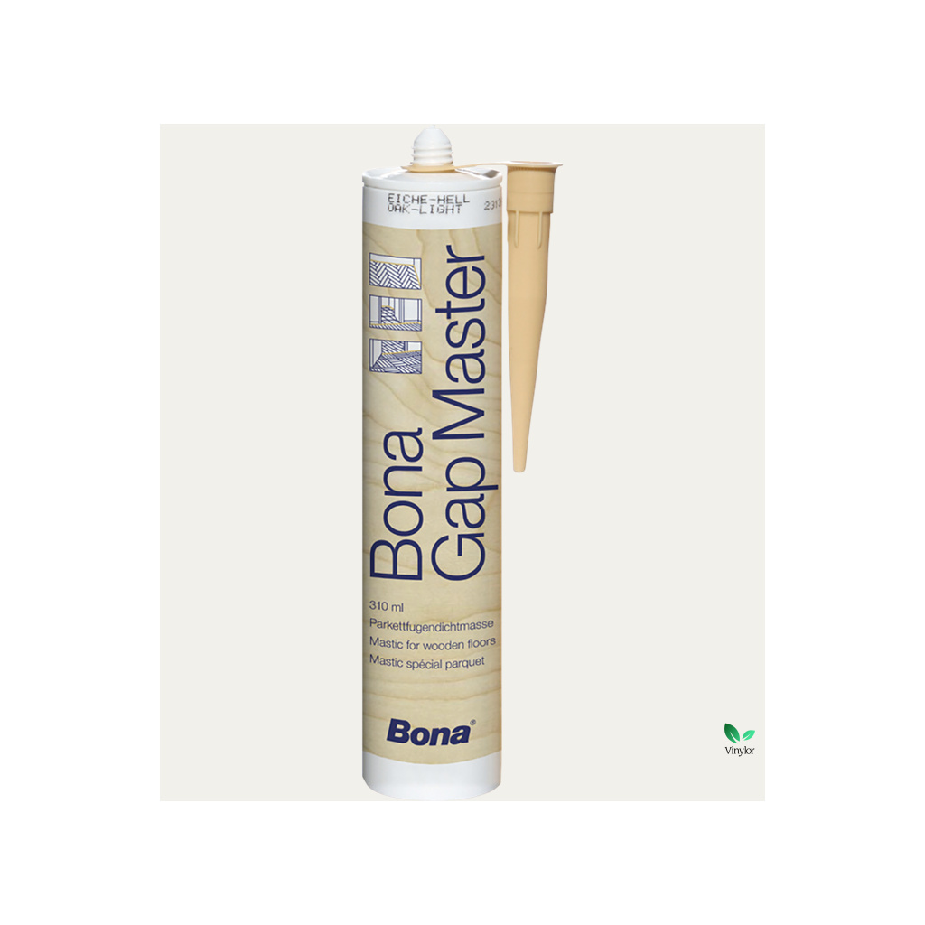 Bona Gap Master je tmelící hmota na bázi akrylátu, určená k tmelení spojů s lištami a prahy. Tmel je k dispozici v 15 různých barevných tónech a po zaschnutí je přelakovatelný všemi druhy parketových laků Bona. Bona Gap Master je tvrdý na povrchu a trvale elastický ve hloubce spáry (15% maximální tolerance pohybu), je bez rozpouštědel a bez zápachu. Může být také použit k opravě poškození a vyplnění mezer a trhlin v dřevěné podlaze.